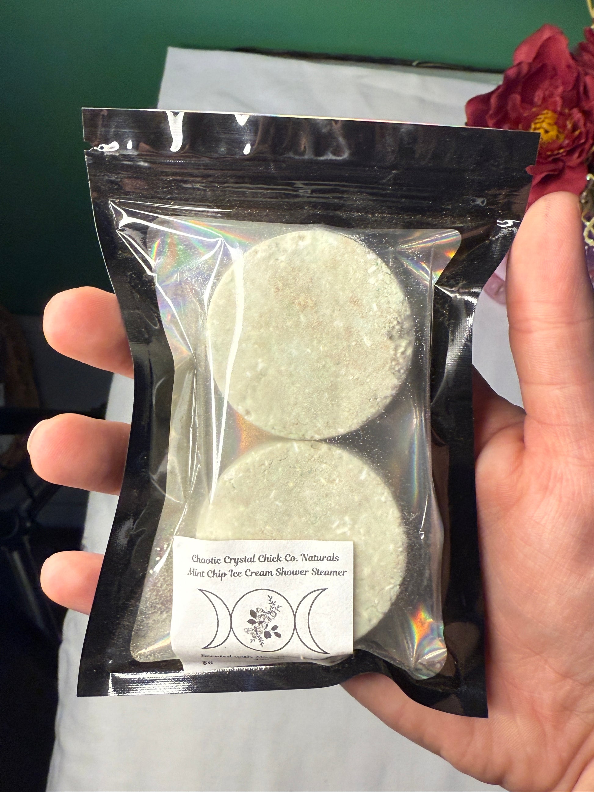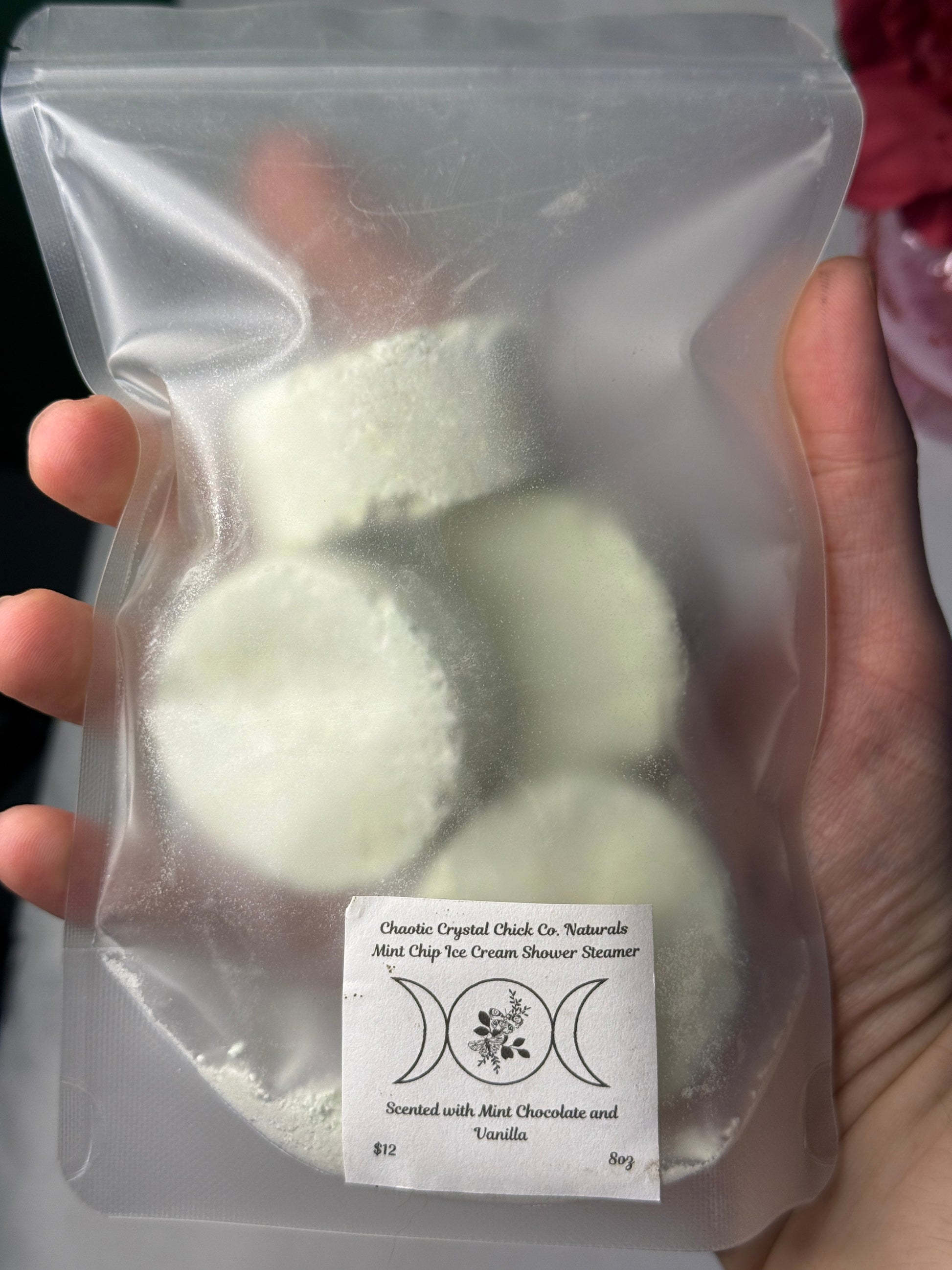 Our Traditional Shower Steamers are created with baking soda, citric acid, epsom salts, and corn starch as a base and we use high quality essential oils to create aromatherapy environments to make your showering experience more pleasant.