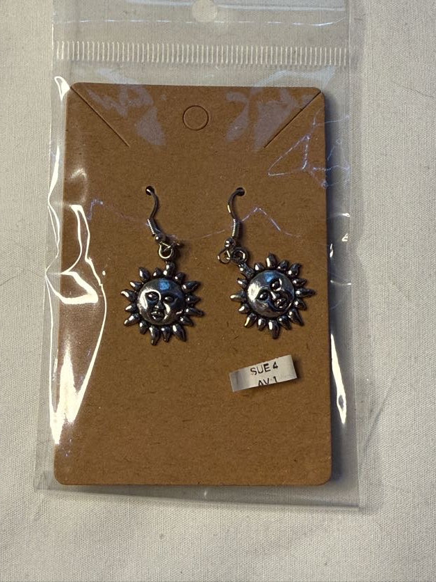Sun with Face Silver Charm Earrings