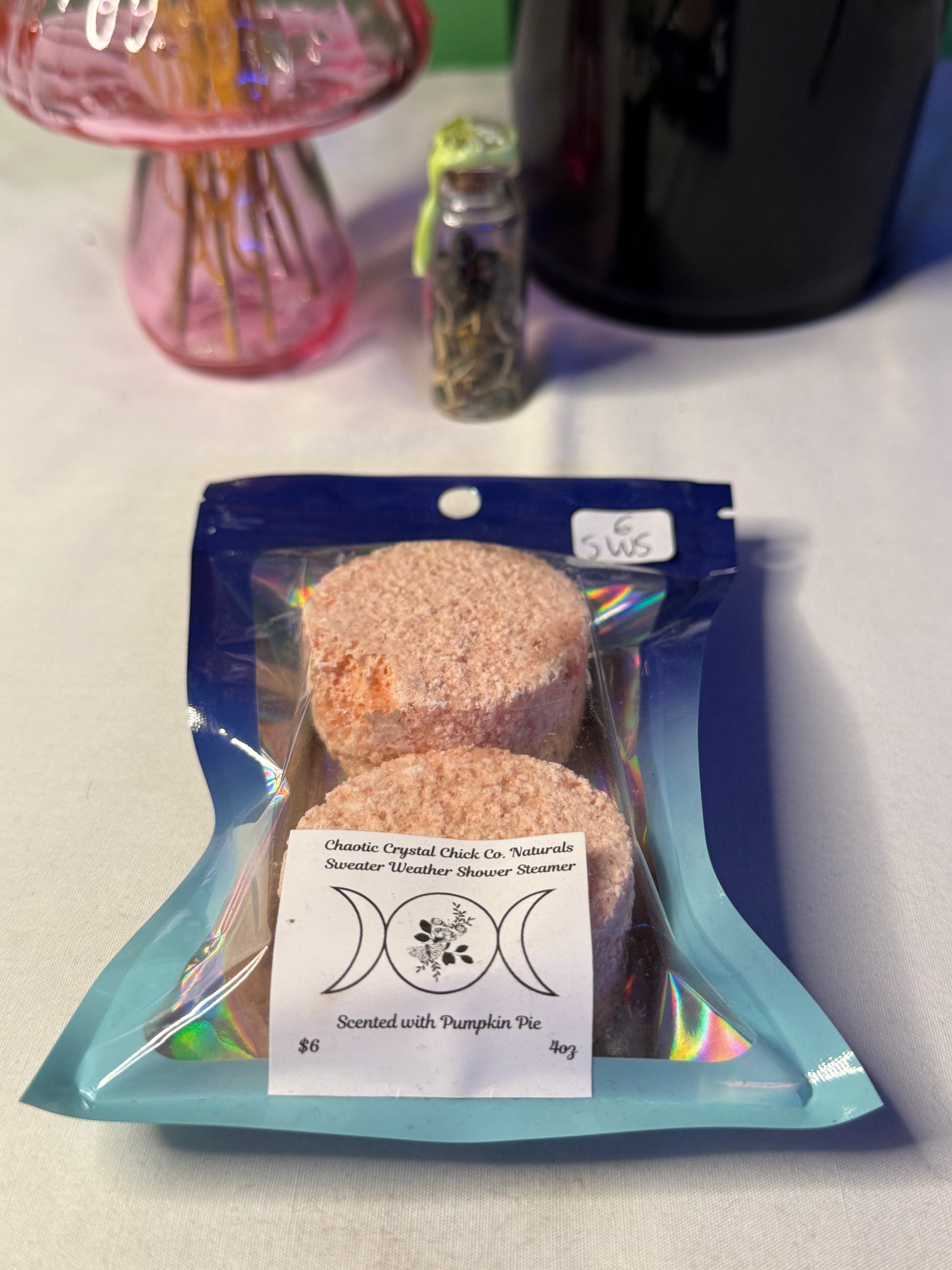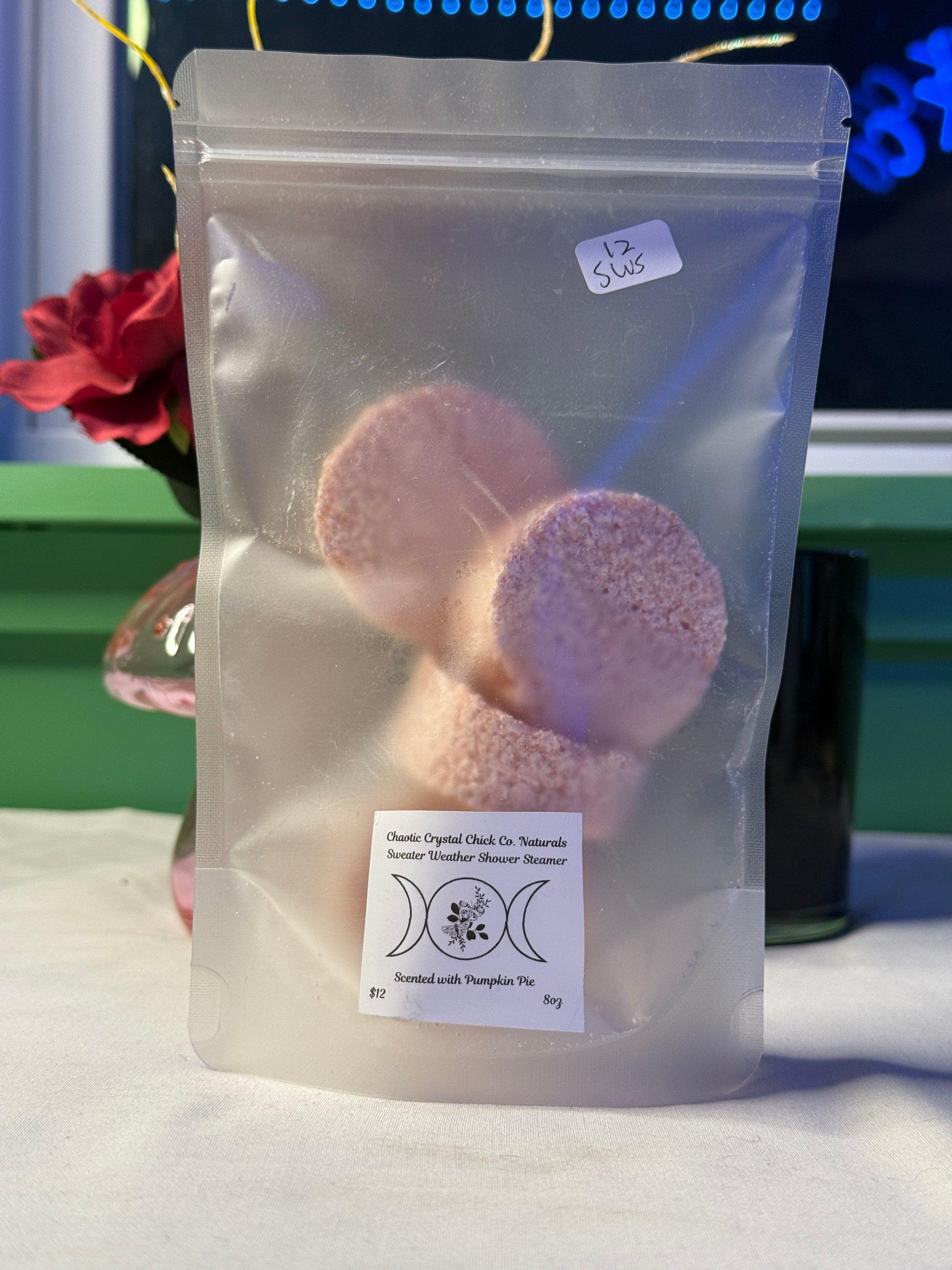 Our Traditional Shower Steamers are created with baking soda, citric acid, epsom salts, and corn starch as a base and we use high quality essential oils to create aromatherapy environments to make your showering experience more pleasant.